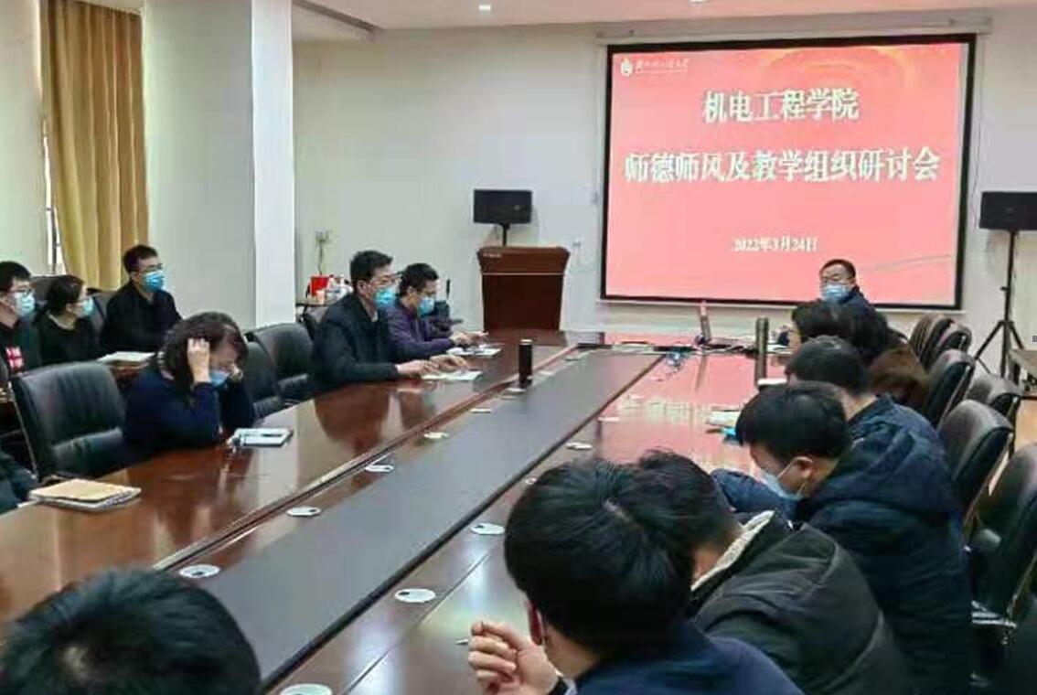 为深入学习习近平总书记在全国教育大会上的讲话精神,培养教师良好师德师风,结合机电学院师德师风建设实际,3月24日,机电工程学院在西三楼215会议室召开师德师风建设教学研讨会。会议邀请校督导组成员裴旭明教授、段红杰教授和学院督导组组长杜文辽教授,与青年教师进行交流研讨,学院党委书记刘国豪、副院长何文斌出席会议,会议由侯俊剑主任主持。