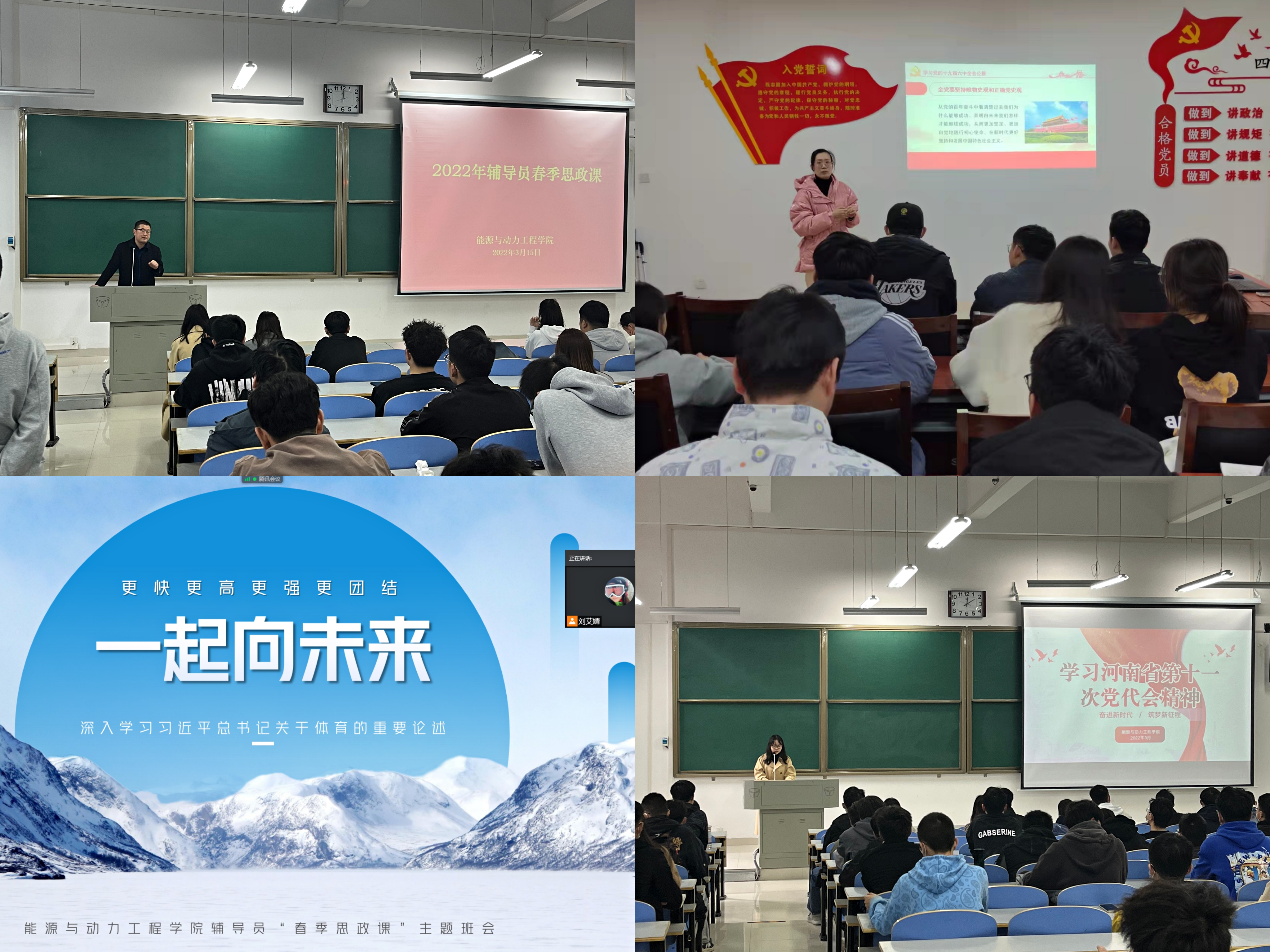 为加强学生思想政治教育,筑牢新时代青年理想信念的根基,引领广大同学践行社会主义核心价值观,3月15日至19日,能源与动力工程学院各辅导员以专业班级为单位开展了辅导员“春季思政课”教育活动。