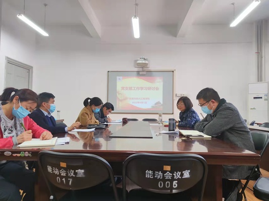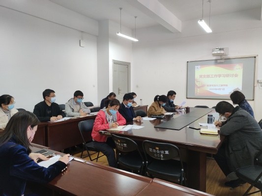 4月1日下午,能源与动力工程学院在工程楼407召开党支部工作学习研讨会,学院党委书记邵建敏、副书记李俊丰、副院长吴学红及学院所有党支部委员参加会议。
