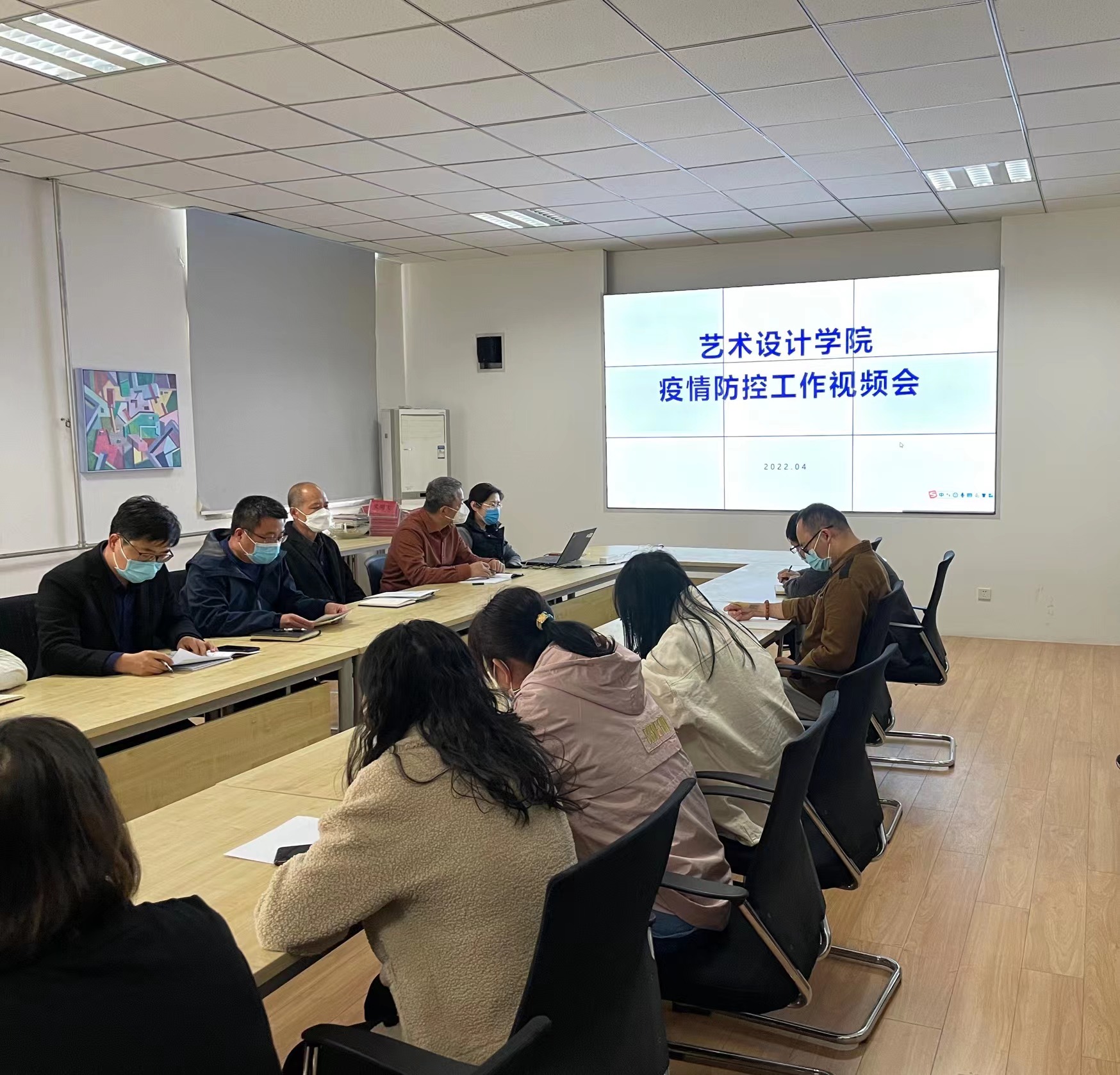 4月4日下午,艺术设计学院在东四楼307会议室召开疫情防控工作视频会,院长曹阳,副书记贾红雨,副院长任建军、卢建洲、薛峰,以及系部负责人、党支部书记、全体辅导员、党政办公室人员到场参会,学院其他教师在线参会。会议由党委书记邵元珠主持。