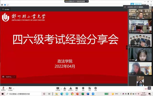 为进一步加强我院学风建设,帮助同学们掌握科学备考方法,高效备考英语四六级,4月7日下午,政法学院举办英语四六级考试线上经验分享会。