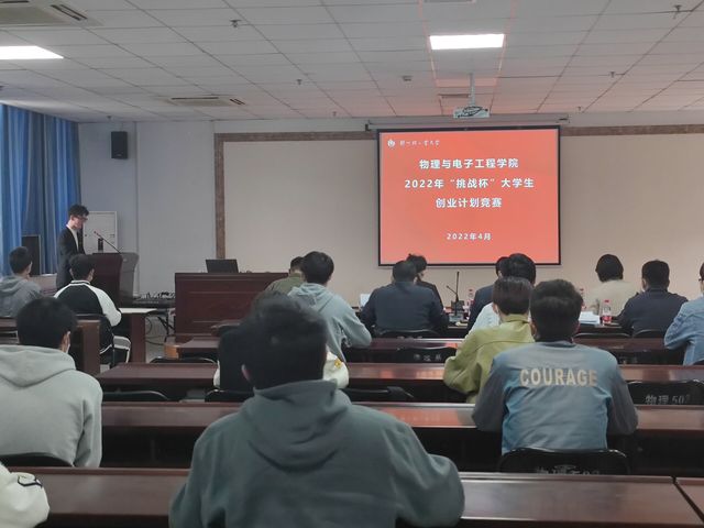 为了提高学生科技创新意识,增强创新实践能力。4月14日下午,物理与电子工程学院在四教503会议室和腾讯会议平台举办了2022年“挑战杯”大学生创业计划竞赛学院选拔赛。学院党委副书记李玲、副院长刘德伟及专业教师代表出席大赛并担任评委。
