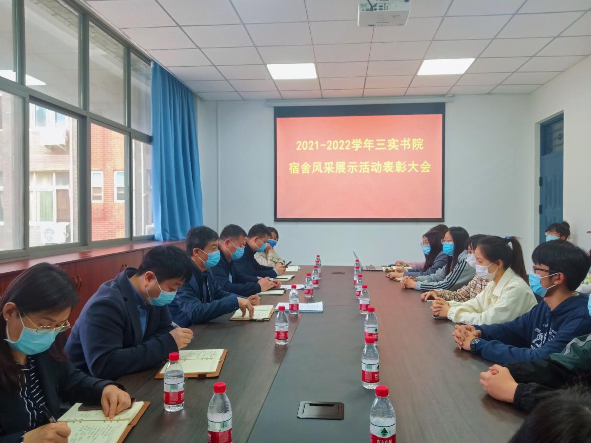 4月14日下午,三实书院在书院会议室召开2021-2022学年宿舍风采展示活动表彰大会。书院党总支书记张世涛、院长景志勇、副书记王银锋、副院长谭俊超、李英梅、刘放美以及全体辅导员和学生宿舍代表参加大会。会议由书院院长景志勇主持。