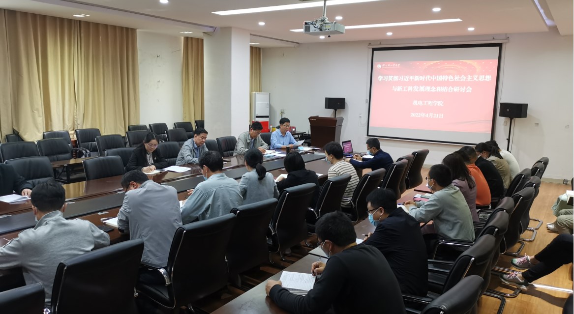 4月21日下午,机电工程学院在西三楼215会议室召开学习贯彻习近平新时代中国特色社会主义思想与新工科发展理念相结合研讨会,院领导班子成员、系(中心)主任、党支部书记、组织员、辅导员等参加会议,会议由院党委书记刘国豪主持。
