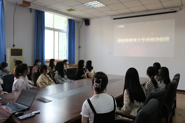 为全面提高师生的国家安全意识,进一步宣传识邪防邪知识,增强师生拒绝邪教的自觉性,4月20日中午,外国语学院在东二楼227开展反邪教警示教育进校园活动。