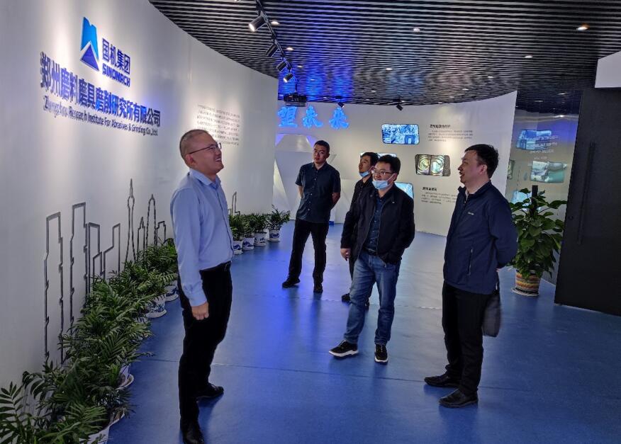 在交流过程中,邢主任详细地说明了国家磨料磨具质量检验检测中心的发展现状、实习岗位设置,对人才的需求情况、人才招聘基本要求和流程等,希望学院能向中心推荐合适的优秀毕业生。同时,双方还就进一步推进人才培养、联合指导毕业设计、产学研合作等方面进行了深入探讨,并达成了初步合作共识。最后,在邢主任和刘部长的带领下,老师们一行参观了郑州磨料磨具研究所有限公司展览大厅,了解和学习了该公司近年来围绕国家和河南省的重大需求、重点领域等方面突破的关键技术、开发的典型金刚石磨具、以及根据行业发展趋势正在努力开发的新技术、新工艺、新产品等。
