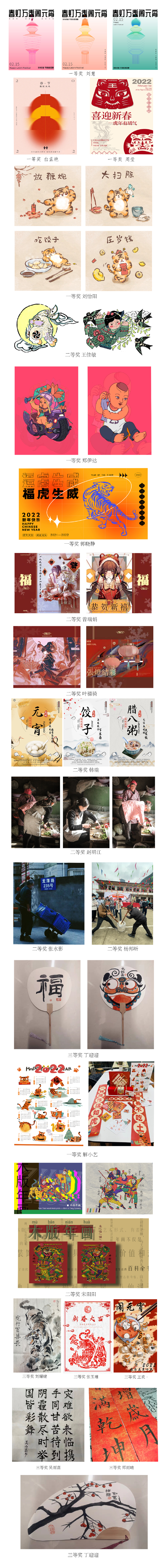 此次寒假实践活动,包括“年俗文化考察及创作”专项实践活动、“学党史知团史强国有我”专项实践活动、“返家乡入基层志愿服务”专项实践活动、“走百县访千企创业有我”就业实践活动四部分,学生通过海报、摄影、书法、微视频多种艺术表现形式进行创作,丰富多样。活动共收到近300份的投稿作品,经过学院评委们的认真审核,评选出一等奖13人,二等奖33人,三等奖42人,优秀奖19人。