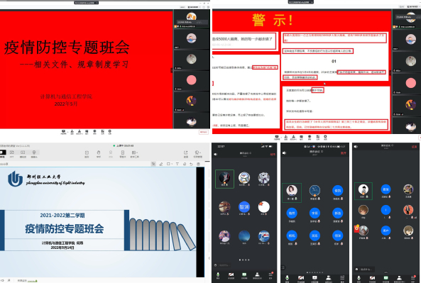 为更好地落实学校疫情防控工作要求,长期筑牢校园疫情防控防线,确保同学们的生命健康安全,计算机与通信工程学院高度重视,精心组织全体辅导员通过线上线下相结合的形式召开内容丰富、贴合实际的疫情防控警示教育会议。