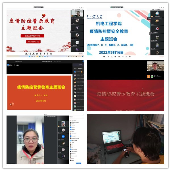 为持续做好疫情防控工作,时刻绷紧疫情防控这根弦,5月16日和17日,机电工程学院辅导员召开线上疫情防控警示教育主题班会。此次班会覆盖各年级各班级,警示教育到每位学生。