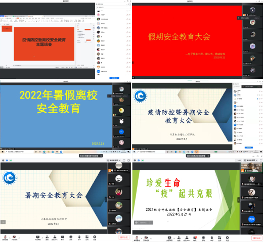 为进一步做好2022年暑假学生的安全教育工作,增强同学们的安全意识,提高防范能力,确保广大同学度过一个安全的假期,计算机与通信工程学院全体专兼职辅导员分别组织召开了安全教育线上主题班会。