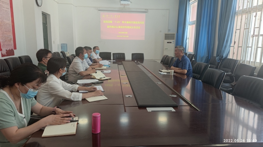 5月26日下午,政法学院党委召开深刻汲取“7·20”特大暴雨灾害追责问责案件教训开展以案促改专题民主生活会。副校长苏东民到会指导,政法学院班子成员、社会发展研究中心领导干部参加,会议由学院党委书记宋德涛主持。