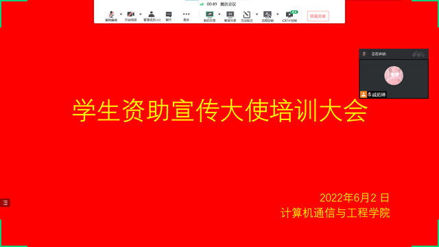 为进一步落实国家资助政策,扩大学生资助政策宣传效果,培养受资助学生感恩意识和奉献意识,积极践行社会责任,计算机与通信工程学院于2022年6月2日下午15:00召开学院“学生资助宣传大使”培训会。