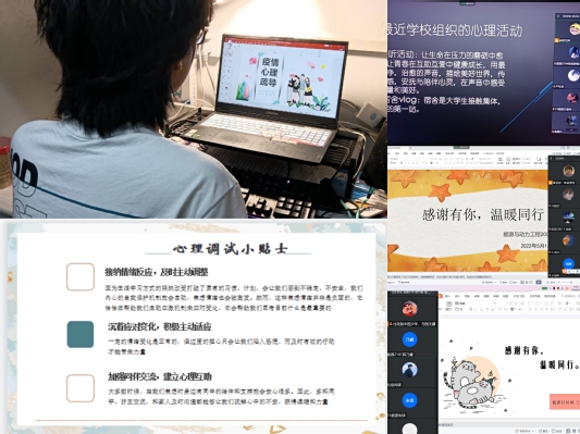 班会由各班级心理委员主持。会上,心理委员进行了基本的心理知识科普,讲述了特殊时期大学生普遍存在的心理困扰。辅导员们就疫情防控管理下学生如何调整心理状态提出了意见建议:一是要坚定抗疫必胜信心,正确佩戴口罩,坚持每日健康打卡、配合学校做好核酸检测工作,如有异常主动报备。二是要调整情绪,当同学们面临生活、学习环境重大变化,出现焦虑、烦躁等情绪时,可以通过听音乐、阅读书籍、体育锻炼等方式来调节情绪,转移注意力。三是必要时寻求心理支持和专业帮助,比如求助心理老师,或者拨打心理热线电话等。