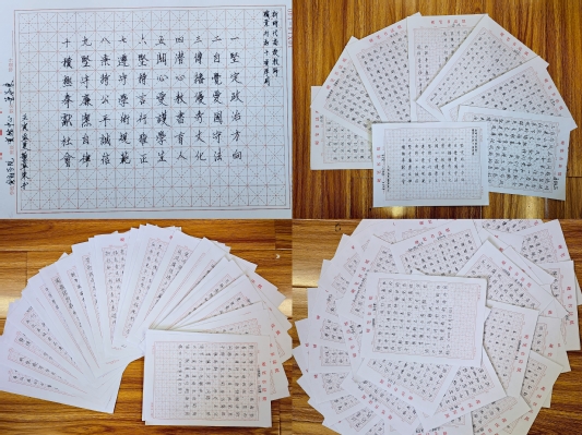学院各支部按照党委要求,带领支部党员干部迅速行动起来,大家在学习《习近平关于注重家庭家教家风建设和论述摘编》等重要内容的基础上,围绕“倡树红色家风”主题,以毛笔、硬笔等书法作品形式,书写习近平关于注重家庭家教家风建设、党风廉政建设等重要论述、领袖诗词、新时代高校教师职业行为十项准则、四有好老师标准等,不仅练了字,更炼了心,受到了大家的热烈欢迎。