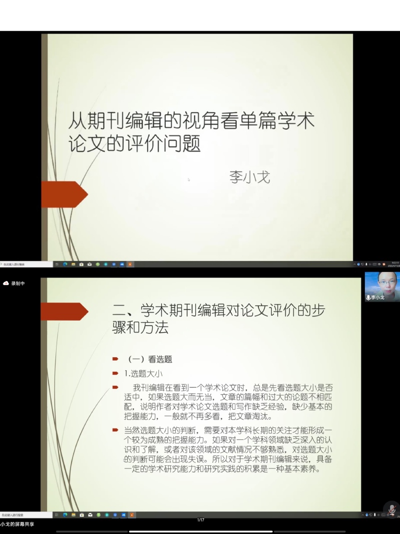 本次讲座李小戈博士通过在论文发刊中积累的编辑与审稿方面的经验,介绍了论文评价的方法,通过丰富的案例讲解如何提升论文的质量,为研究生论文写作与投稿前的自我审查提供了规范与指导。