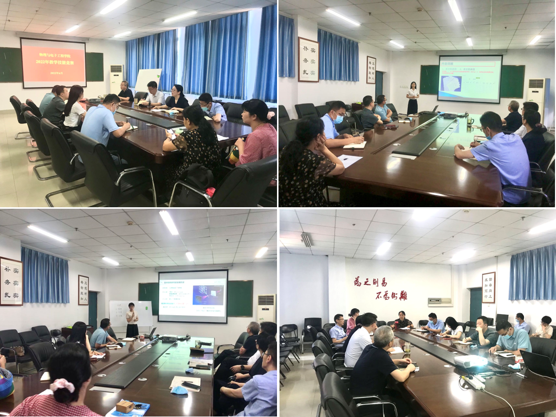 为不断提升青年教师的教学能力和业务水平,进一步加强教师队伍建设,根据学校《关于组织参加2022年度河南省教育系统教学技能竞赛活动的通知》的具体要求,物理与电子工程学院于6月17日上午在510会议室举办2022年度教学技能竞赛,本次竞赛由领导班子、校督导组成员和各系部主任担任评委,工会主席李玲主持竞赛。