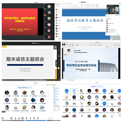 期末考试于近期陆续进行,为进一步严肃考风考纪,保证本学期线上考试公平有序进行,培养学生的诚信品德,营造公平、公正、诚信的考试氛围,计算机与通信工程学院各专兼职辅导员、班主任于近期召开了线上期末考试诚信教育主题班会。