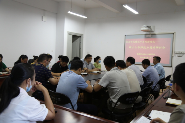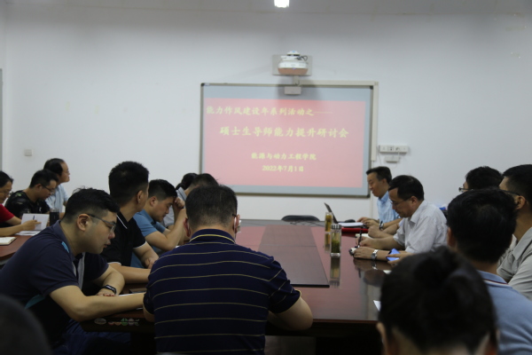 为贯彻落实学校“能力作风建设年”活动要求,提升学院研究生导师能力,7月1日上午,能源与动力工程学院在工程楼407召开研究生导师能力提升研讨会。学院院长许培援出席,副院长金听祥主持,全体研究生导师参加。