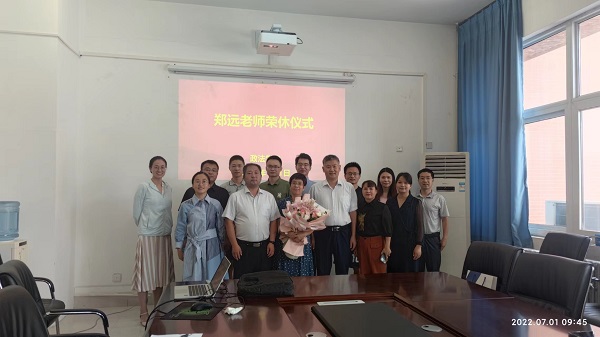 在荣休仪式现场,院长韩超对郑远老师在我校三十余载工作所取得的成就给予了高度的评价,对她为学院所做的贡献表示衷心的感谢,对她的退休生活表达了美好的祝愿。郑远老师分享了多年来工作的感悟和体会,感谢学校多年来的培养和学院长期以来的关怀,用真挚、朴素、感人的话语与表达了对学校的深切热爱和美好祝愿,表示将一如既往地关注学校学院建设,力所能及发挥余热。青年教师代表为郑远老师送上美丽的鲜花和真诚的祝福,韩超院长为郑远老师颁发纪念品并合影留念。