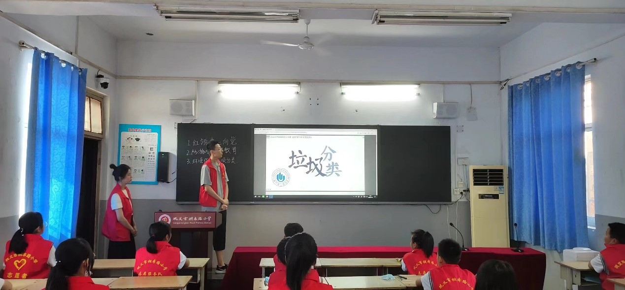 第三课《环境保护知识宣讲》,实践队员们讲解了垃圾分类、有害垃圾的处理方式、垃圾处理不当对环境造成的危害等有关知识,旨在提高小学生的环保意识,将环保理念在生活中落到实处,贯彻落实“绿水青山就是金山银山”的思想理念,让小学生们从小就树立生态文明意识,倡导大家拥有绿色健康的人生,让祖国下一代在绿色中成长。