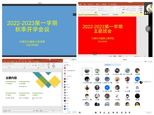 为做好2022年秋季学期线上教育教学和疫情防控工作,进一步引导学生以良好的心态和积极的精神面貌投入到新学期学习当中,8月27日-29日,计算机与通信工程学院全体专兼职辅导员分批次组织学生召开了新学期线上主题班会。