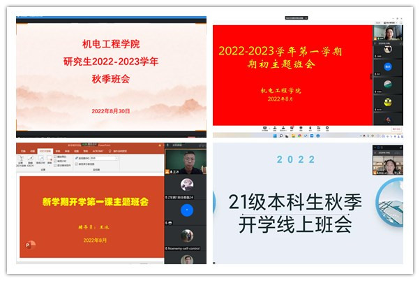 为进一步统筹做好疫情防控和线上教育教学工作,确保学生以积极健康的心态和崭新的精神面貌开启新学期学习和生活,近期,机电工程学院本科生、研究生辅导员老师分批次、全覆盖召开了新学期“开学第一课”主题班会。