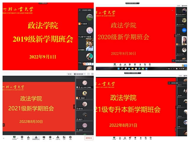 为做好新学期教育教学管理工作,进一步保证新学期学生工作顺利开展,政法学院于830日至9月1日分年级召开了新学期线上班会。