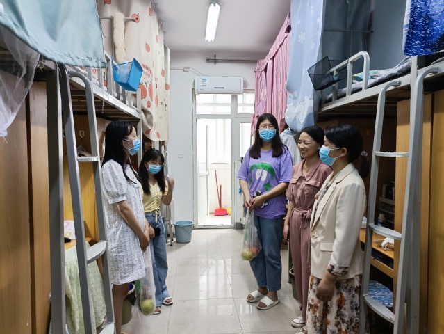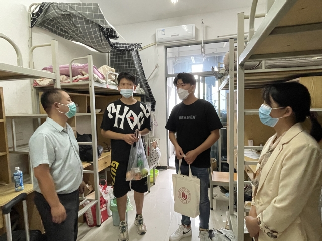 走访过程中,学院领导老师向同学们送上了节日问候和祝福,亲切询问了同学们的返校情况、暑期学习生活情况和新学期的学习情况,并叮嘱大家要严格遵守国家和学校疫情防控要求和相关规定,做好三天两检工作,在校园里活动一定要带好口罩,提高安全防范意识。领导老师们还进一步传达了研究生宿舍的搬迁计划,深入了解了同学们的搬迁准备情况,详细解答了同学们关于搬迁的问题。同学们对学院领导和老师的关心表示由衷感谢,表示一定会严格遵守学校的各项规定,做好个人防护,充分利用学校良好的学习环境,以饱满的热情投入到新学期学习之中。