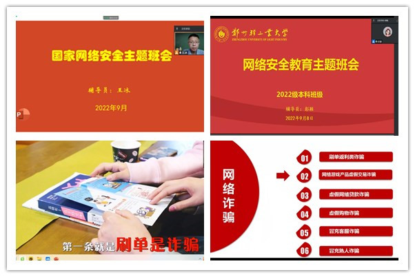 按照学校《关于组织开展2022年国家网络安全宣传周校园日活动的通知》要求,近期,机电工程学院辅导员分批次、全覆盖召开线上国家网络安全教育主题班会。