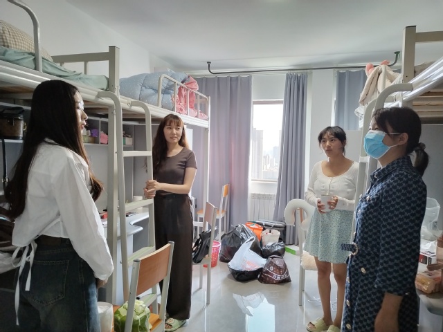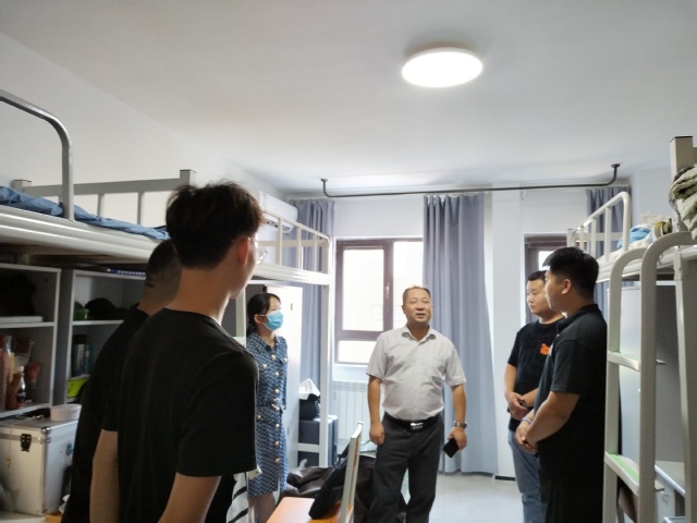 在走访中,学院领导老师与同学们亲切交流,详细询问了同学们的家庭状况、本科毕业院校专业学习情况和对学校的适应情况,希望同学们取长补短、互相学习、增进感情。同时嘱咐大家要严格遵守学校疫情防控政策和宿舍管理规定,尽快适应新的环境,度过充实的研究生生活。接着一起查看了自习室、洗衣房等公共空间。学院领导的慰问看望,热情的话语,亲切的问候,让2022级研究生感受到了大家庭的温暖。大家纷纷表示备受鼓舞,对未来的生活充满了期待和信心,在今后的学习生活中严格要求自己,以饱满积极的态度迎接学习新阶段。
