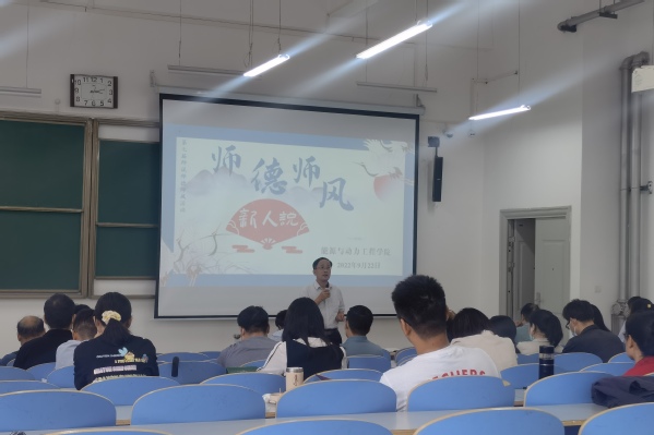 为全面落实习近平总书记关于教育的重要论述和全国、全省教育大会精神,增强全体教师特别是新入职教师立德树人的责任感和使命感,结合学校《关于开展“能力作风建设年”活动的实施方案》,9月22日下午,能源与动力工程学院开展了第七届师说师德师风教育活动之“师德师风新人说”,活动由学院团委书记刘捷主持,学院全体教师参加。