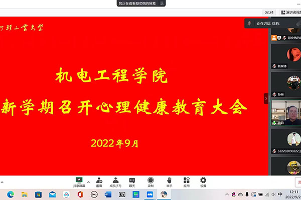 9月28日中午,机电工程学院在腾讯会议上召开新学期心理健康教育工作会议。学院党委副书记孙琳,学院心理健康教育专职辅导员徐莉和各班级心理健康委员参加了此次会议,会议由徐莉老师主持。