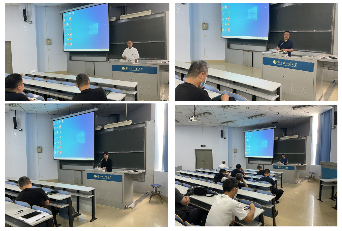 然后,学院副院长卢建洲结合近期学院教学工作,就疫情期间教师线上授课质量、2022版教学大纲撰写质量、一流课程内涵建设,等方面提出具体要求。并带领全体教师学习了《高等学校教师职业道德规范》从教师的爱国守法、敬业爱生、教书育人、严谨治学、服务社会、为人师表六个方面,结合实际案例进行了解读。