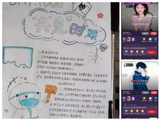 本次活动以“歌以咏志,共克时艰”为主题,共包含两个部分。在“歌以咏志”环节中,各班级以宿舍为单位进行歌曲演唱,有的宿舍以正气浩荡的红色歌曲表达了爱党爱国之志;有的以正能量的励志歌曲激励大家奋发向上、超越自我,也有的以悠扬的抒情歌曲展示了青年大学生的青春活力。在“共克时艰”环节中,同学们用一份份生动有趣的手抄报作品将喜迎二十大、防疫抗疫与心理健康结合在一起,为广大学生提供了学习二十大精神、传承伟大建党精神、做好个人防疫第一责任人和心理健康知识的有益平台,彰显了同学们爱国爱校情怀和特殊时期的责任与担当。