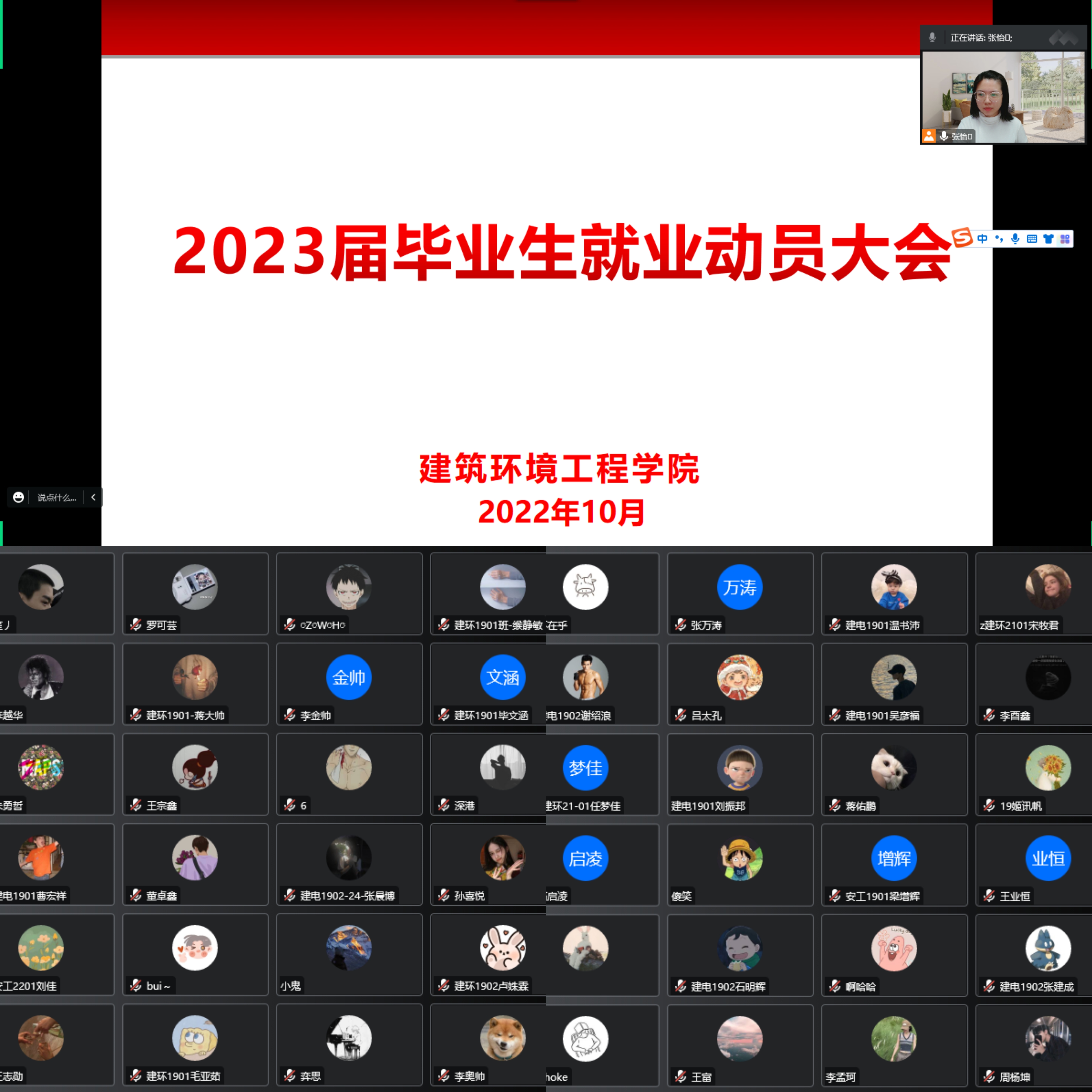 为扎实开展2023届毕业生就业工作,引导毕业生明确就业方向和目标,夯实就业信心。10月21日晚,建筑环境工程学院于线上召开了2023届毕业生就业动员大会。学院党委副书记彭东来、团委书记兼毕业生辅导员寇誉元、就业专职辅导员张怡以及2023届全体毕业生参加了本次会议。