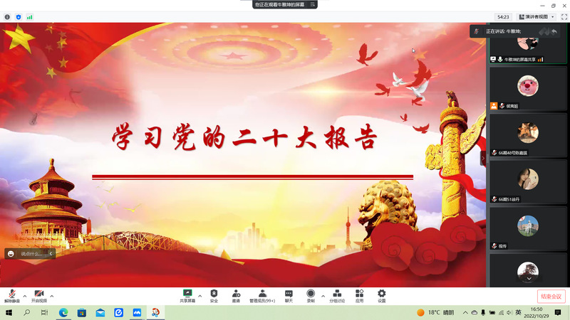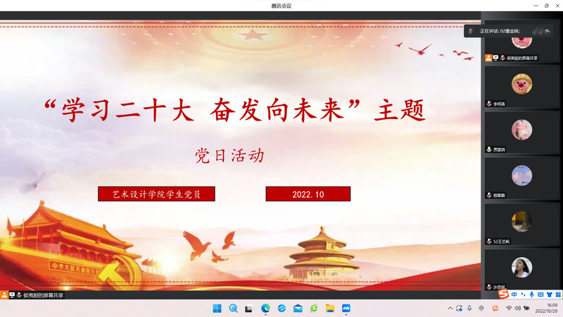 为深入学习领会党的二十大精神,进一步加强党性教育,激发政治热情,10月31日,艺术设计学院各学生支部通过线上组织开展“学习二十大 发展向未来”主题党日活动,各支部同学积极参与了本次活动。