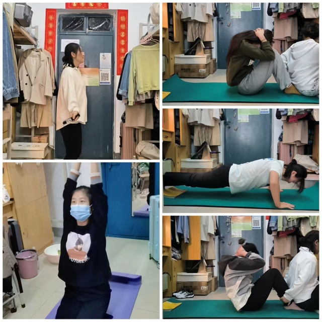 活动期间,在严格遵守学校疫情防控要求的情况下,同学们根据自身实际情况,通过各种各样的形式踊跃参加,在宿舍一方小天地,玩出“大花样”。元气满满的政法学子就地取材,开展引体向上、健身操、瑜伽、八段锦、平板支撑、仰卧起坐、俯卧撑等体育锻炼,强身健体、愉悦身心,在运动中科学地调节生活方式,合理作息、健康饮食,不断提高自身免疫力。在打卡交流群中随时沟通交流,分享健身运动心得,并相互鼓励,期待疫情早日散去。