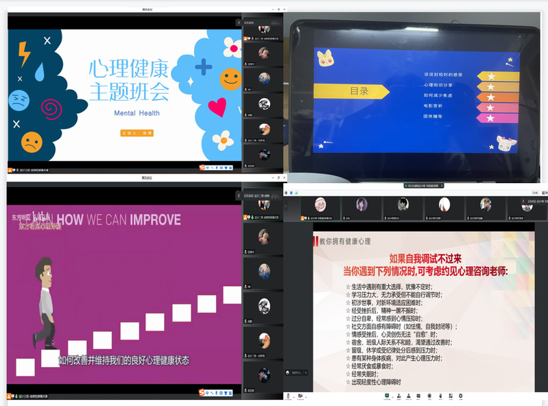 各班以学生疫情常态下产生的心理焦虑、不安等情绪为主题,通过科普心理健康知识、线上观看电影、线上互相倾诉、团体活动等形式,积极引导学生转变心态,学会正视自我情绪与转变内心压力,正确看待和接纳自己心理状态,学习如何在疫情中提高心理免疫力,增加心理韧性,进行自我心理保健,提高自身心理免疫力。同时,各班心理委员积极鼓励同学们通过正确的方式与渠道来改变状态,真正地做到隔离不隔心,利用空白时间去提升自我,保持积极乐观的心态。