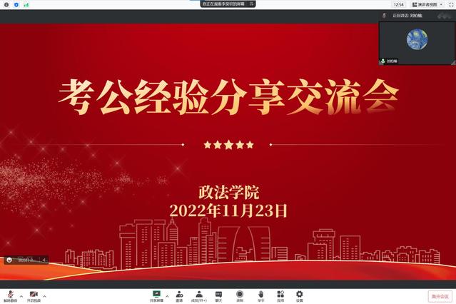 为帮助有考公意向的同学们做好考试规划,提前做好备考准备,1123日晚上,政法学院召开公务员考试经验分享交流会,会议邀请六位2022届毕业生主讲,学院党委副书记刘放美和有考公意向的一百余名学生参加了交流会,会议由就业专职辅导员李昊轩主持。