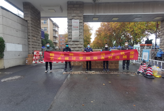 2022年11月22日,艺术设计学院校友、广州实干广告有限公司总经理刘涛先生向学校捐赠价值33000元的纳爱斯消毒液250件、洗手液14件,助力母校疫情防控工作。由于疫情原因,刘涛校友委托纳爱斯集团郑州分公司运送物资到校,校友联络办公室、艺术设计学院负责同志现场接受捐赠。