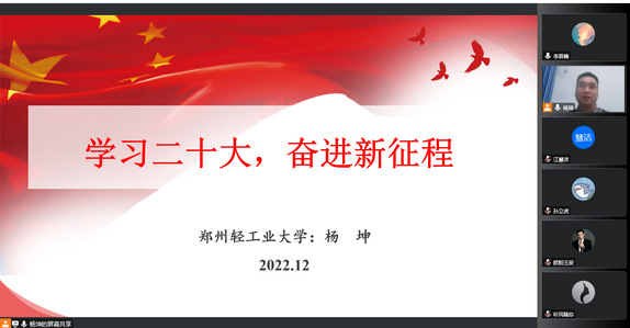 12月11日下午,物理与电子工程学院院长杨坤以“学习二十大,奋进新征程”为题,为研究生讲授了一堂思政课。