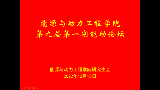 2022年12月15日晚19点,能源与动力工程学院研究生会通过腾讯会议线上举办了第九届第一期“能动论坛”学术交流活动。本次活动由韦新同学主持,吕子建老师应邀出席,部分2021级研究生和全体2022级研究生参加。