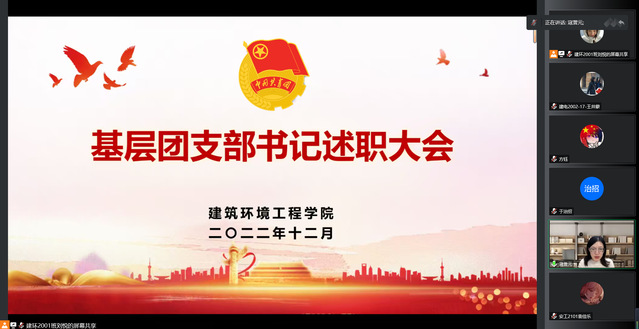 为进一步落实全面从严治团方针,切实抓好基层团支部建设,激发基层组织活力,12月12日,建筑环境工程学院通过腾讯会议召开2022年度基层团支部书记述职评议大会。建筑环境工程学院团委书记寇誉元、学院团委委员、各班级团支部书记参与此次会议。