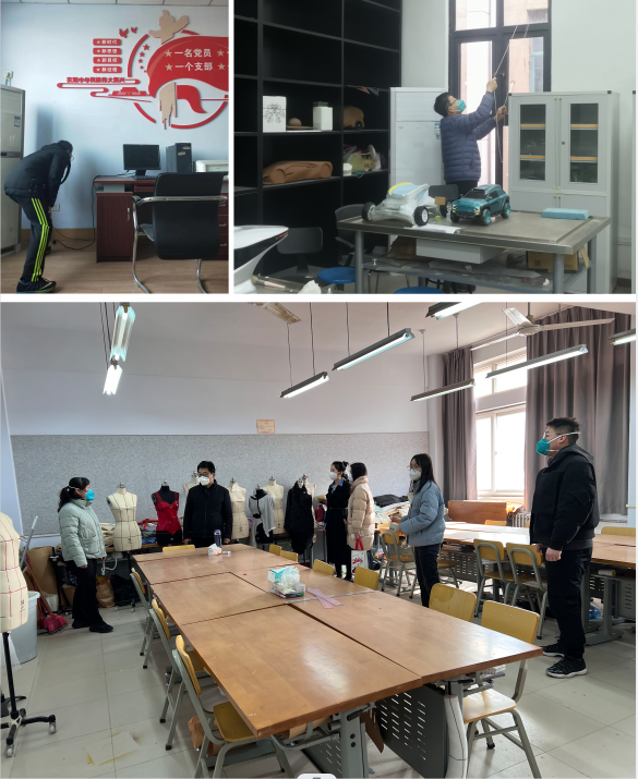 1月5日至6日,艺术设计学院系部、中心、科室责任人,对所属办公场所进行全面排查,学工系统教师对学生教室及所属学生活动场所进了行检查。本学期抗疫所有涉及场所均作为重点排查区域,同时排查过程中严格参照学校安全检查标准。各位负责人重点检查了环境卫生、用水用电安全、师生人身安全防护、消防通道是否通畅等,并对检查过程中发现的问题及时进行了处理。