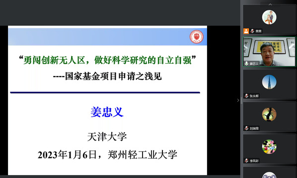 1月6日下午,应我校材料与化学工程学院邀请,国家杰青天津大学姜忠义教授线上为我校师生做了主题为“勇闯创新无人区,做好科学研究的自立自强”的学术报告,本次报告由材料与化学工程学院张永辉副院长主持,学院相关专业的教师参加了报告会。