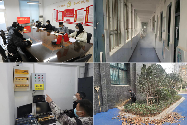 2月6日,学生经过3个月线上教学后平安返校报到,当天下午,全体科级以上干部对办公室、教室、功能室等开展安全排查,及时消除安全隐患,确保平安开学。