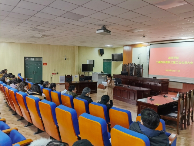 2月11日上午,政法学院在科学校区活动中心楼112室召开三届四次教职工暨工会会员大会,学院全体教职工参加会议。会议由学院党委书记宋德涛主持。