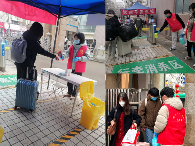 返校前,学院辅导员通过细致摸排,详细掌握学生返校情况,建立未返校学生信息台账,持续做好跟进服务;返校时,学院招募学生志愿者,为开学返校学生提供消杀测温、秩序引导等服务,助力学生安全返校。返校后,学院领导带领辅导员深入学生宿舍走访慰问,了解学生返校报到情况,为同学们送上学院的关心和温暖。