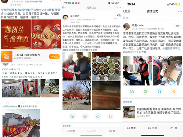 在“越团结豫有力”主题宣讲直播中,我院学子认真观看、记录笔记,对寒假生活做好清晰的规划,积极参与“越团结豫有力”短视频作品征集和相关微博话题。在“温暖过冬”文明实践服务关爱活动中,同学们积极在家乡因地制宜开展课业辅导、倾听疏导、义务支教等活动,为不熟悉智能手机的老人订购生活必需品,从一件件小事做起,带着责任、带着感情、带着情怀,以实际行动回报家乡。