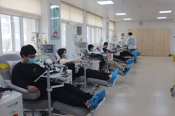 中午,参加无偿献血活动的同学们到达献血现场。在志愿者的指引下,同学们有条不紊地排队填写表格、认真做好测量血压、采血检验等准备工作。在医务人员的指导下,积极配合伸出胳膊,让充满爱心的热血缓缓地流入一个个储血袋。在献血的过程中,同学们踊跃参与,并纷纷表示在今后将继续参与无偿献血志愿服务活动,希望通过献血来帮助需要帮助的人,挽救更多宝贵的生命,同时将动员身边的同学们积极关注社会公益事业,为社会奉献一份爱心和力量。
